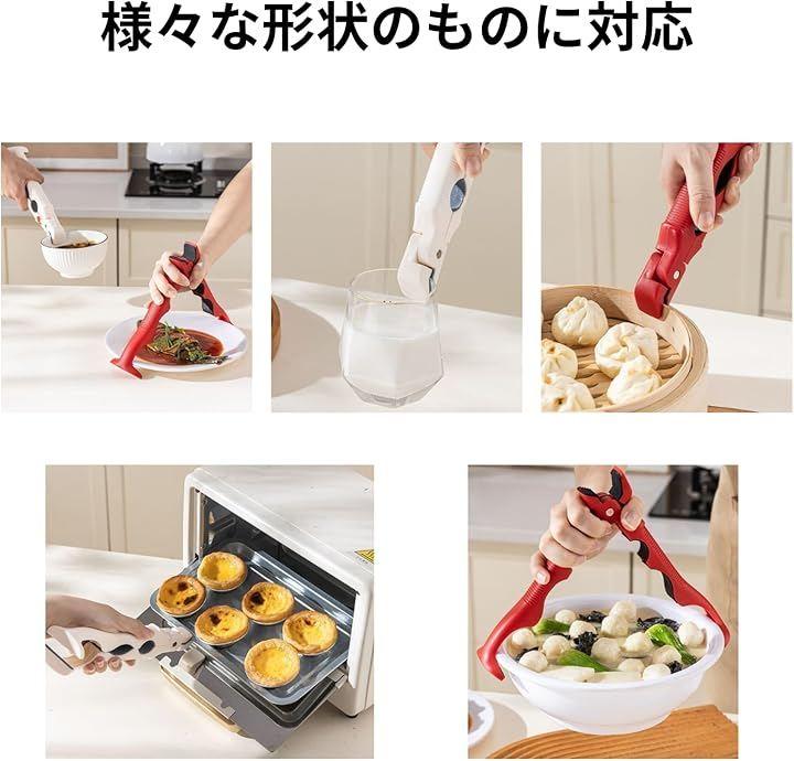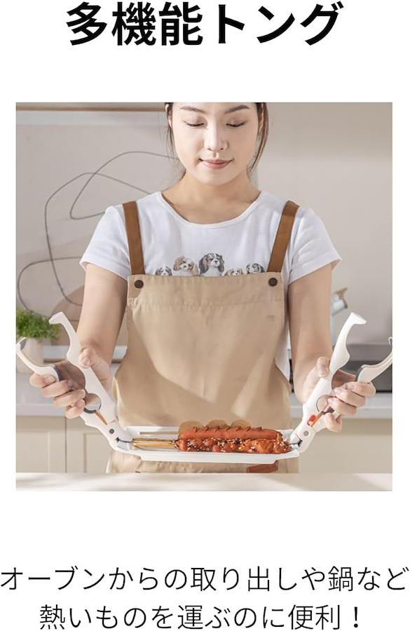「熱い鍋や皿をつかめるミトンのようなトング」