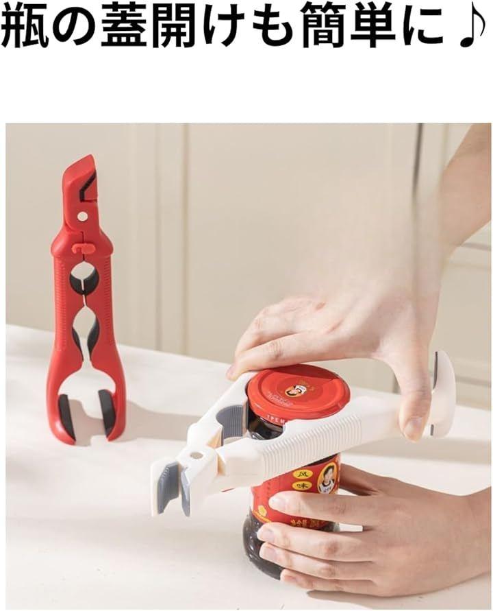 「1本3役。調理も配膳もラクラク」 トングとして食材の取り分け、クランプとして熱い碗や大皿の移動、さらに瓶のフタ開けまで対応。
