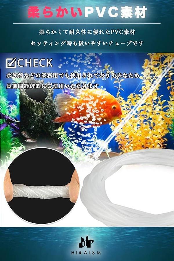 「目立たない半透明カラー」目立ちにくい半透明のエアチューブですので、おしゃれな水槽やアクアリウムの景観を損ねることなくお使いいただけます。
