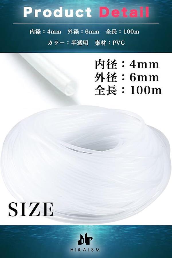 「商品内容」エアチューブ(シリコンチューブ) 内径:4mm 外径:6mm 全長:100m カラー:半透明 素材:PVC