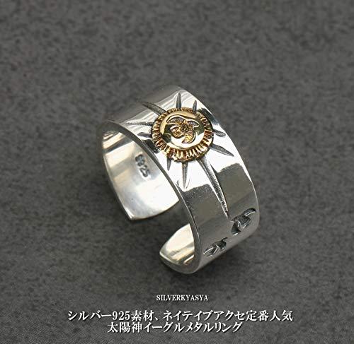シルバー925インディアンジュエリー、ネイティブアクセ定番の金イーグルメタル平打ちリングです。