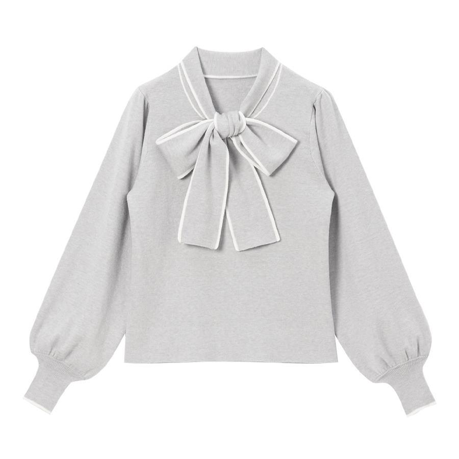 もちもち素材にやみつきになるボウタイニットトップスが今年も登場♪【デザイン】シンプルなデザインで、万能に使えるボウタイニットトップスです。リボンと袖口の配色デザインがコーデのアクセントになってくれるデザイン◎ボウタイ部分はご自身で結んでいただく仕様で、被りで簡単に着用いただけます。ぽわっとボリューミーなお袖が可愛くて、スリムなリブできゅっと手首を細く見せてくれます。身頃は程よいフィット感で、身体のラインを拾いにくいのも嬉しいポイントです♪