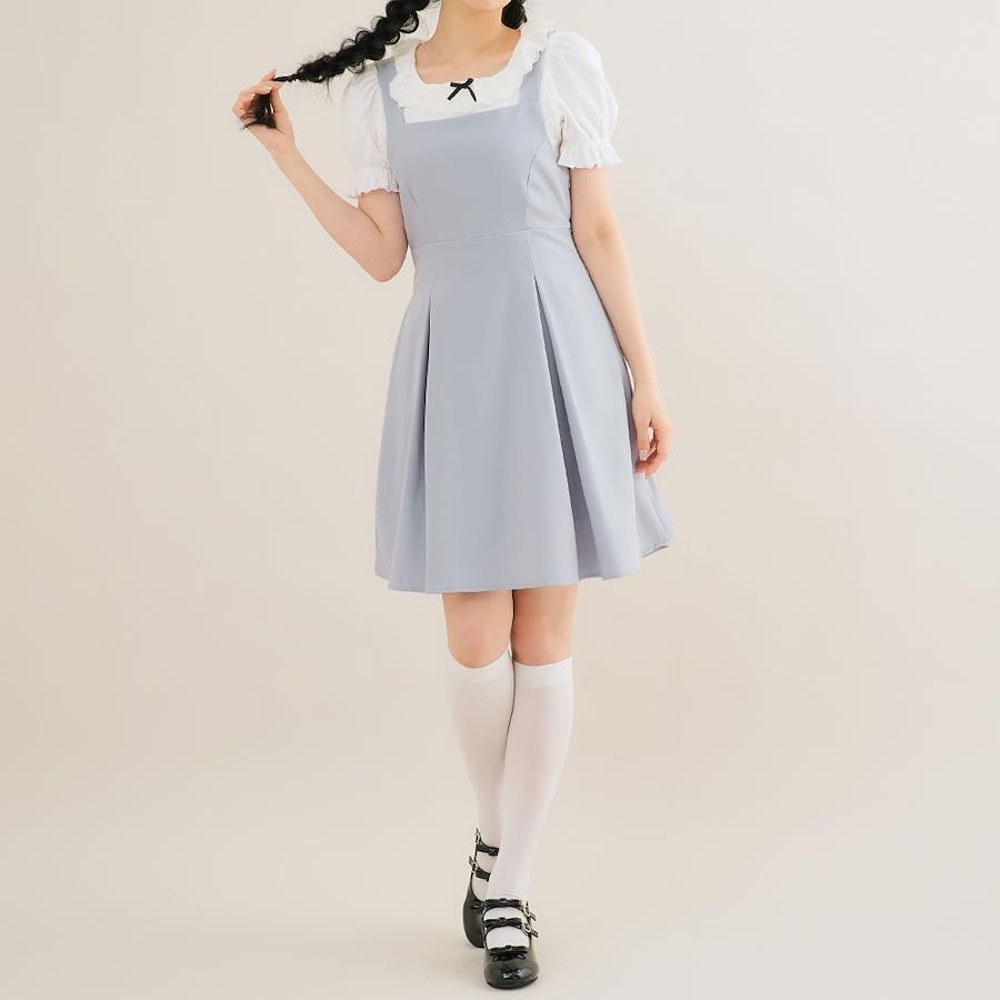 【デザイン】フィット感のある綺麗なシルエットと自然なドレープ感裾のフレア分量をたっぷりにしたことで、女性らしいスタイルに仕上がります。最大のポイントは高めのウエスト切り替えと、ローウエストから始まるフレア切り替え♪お腹まわりにボリュームが来ない設計で、着るだけで細見え効果抜群。肩紐も細すぎない太さで、肩周りもほっそり見せてくれます。前はあえてシンプルに、どんなトップスとも合わせられるデザインで後ろの大きめリボンが存在感をUP◎ご自身で結んでいただく仕様なので、リボンの大きさをお好みで調整できるのも嬉しいポイントです。