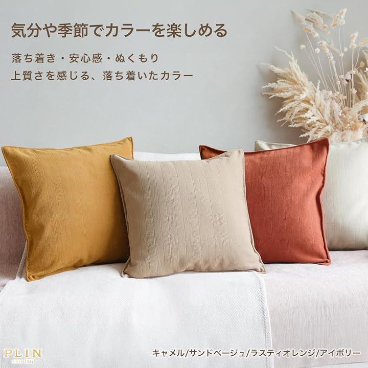 選べるサイズ&カラー。 40x40cm/45x45cm/50x50cm アイボリー・グリーン・ブルー・オレンジなど、お部屋やソファに馴染む落ち着いたカラー展開。