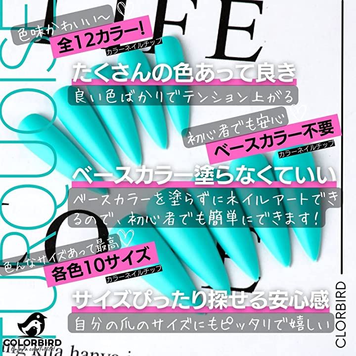 ・各色ごとにサイズがたくさんあり、ご自分の爪に合うサイズがきっと見つかります。