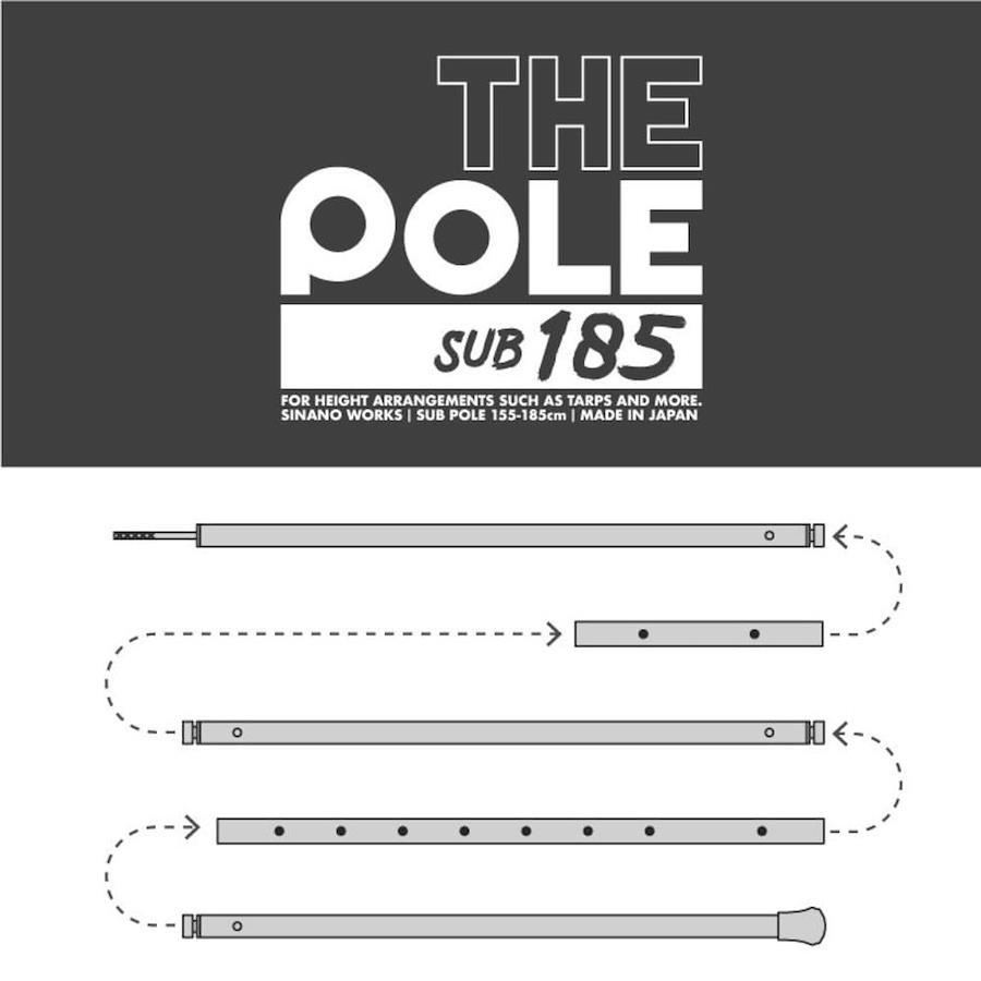 SINANO WORKSポール専門メーカーが手掛けた特製タープポール★高耐久で長く使える! 独自構造で曲がりに強いシャフト設計★サブなのに主役級! アルマイト染色加工&デザイン★変幻自在! サイズ調節機構でアレンジ可能★修理・パーツ交換OK!・商品名:THE POLE SUB185・カラー:BK/RD・使用サイズ:1,550 ~ 1,850mm(5cm ごと6 段)、 1,030 ~ 1,330mm(5cm ごと6 段)・収納サイズ:約620×80×25mm・重量:約360g・材質:アルミ合金・付属品:専用収納袋付き・生産国:日本製