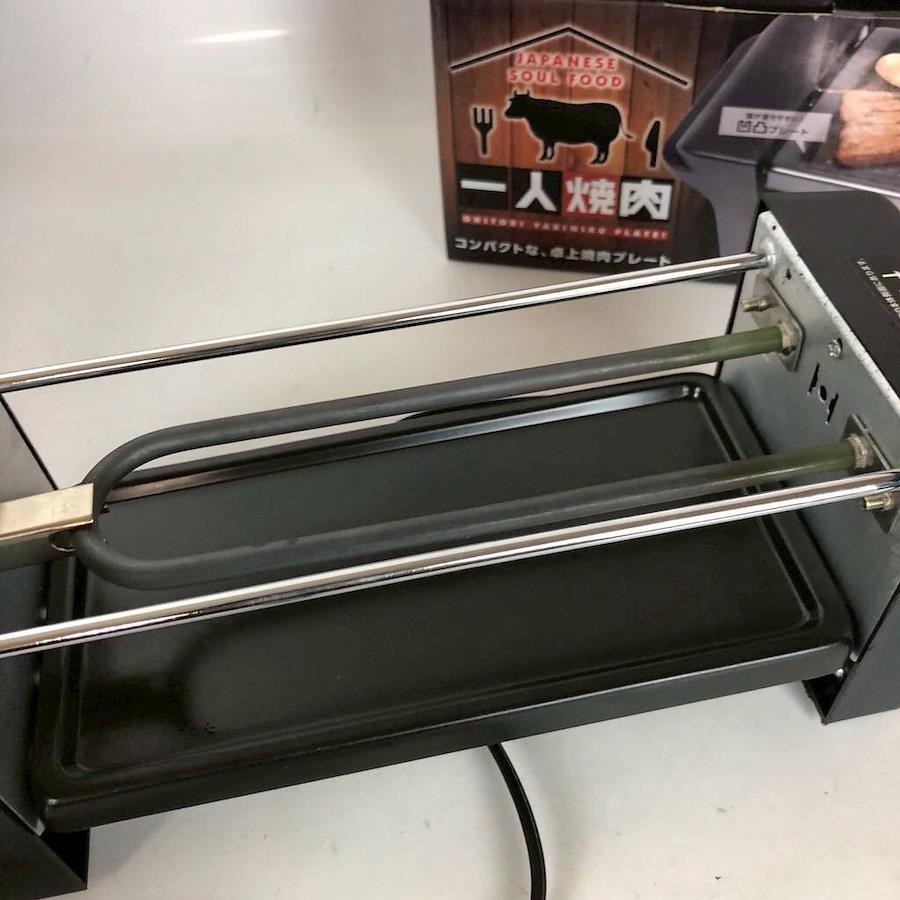 商品名:一人焼肉グリル 卓上ホットプレートサイズ:約 幅28cm × 奥行10cm × 高さ10cm電源:家庭用コンセント式(AC100V)特徴:コンパクトサイズ/取り外し可能プレートでお手入れ簡単