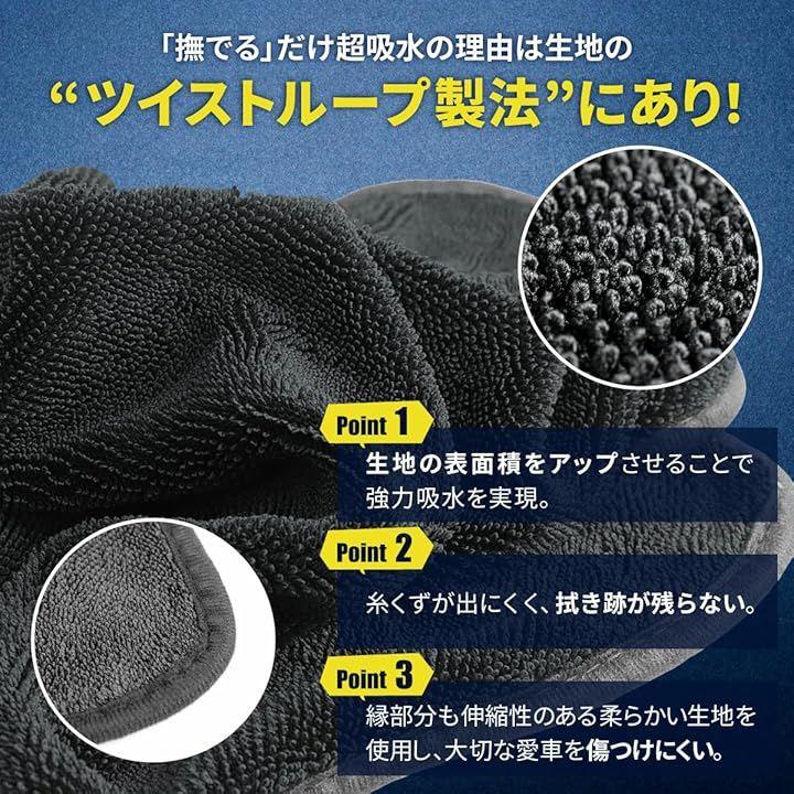 「撫でるだけでぐんぐん吸水」時間も身体の負担もかかる洗車時の拭き上げ作業にピッタリな洗車タオルです。