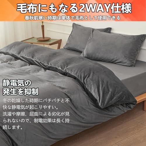 【なめらかな肌ざわりの布団カバー】◆ポリエステル100%(マイクロファイバー)。絨の密度は高く、もっと柔らかく、もっと保温して。◆サイズ:シングル・(150×210cm) 。◆「仕様」片側全開ファスナーなので、簡単着脱できます。布団留めひも8ヶ所付き。 【あったか接触温感・蓄熱保温機能】肌ざわりのひみつ極細マイクロファイバーを高密度で編み上げた生地のカバーは布団に入った瞬間ヒャッと感がなく、入った瞬間からすぐに暖かさを感じる事できます。ほどよく暖かい空気を含んでくれますので、保温性が高くなっています。ぬくぬくの暖かさで、寒い時期には欠かせないアイテムです。 【静電気防止加工】静電気の発生を抑制 生地に導電性繊維を混合しているので、静電気を軽減させ、ホコリや花粉等が付きにくくなっています。洗濯や摩擦、屈曲による劣化が見られないので、制電効果は長く持続します。 【毛布にもなる2WAY仕様】春秋肌寒い時期は単体で毛布として、寒い時期は羽毛布団や掛け布団と組み合わせて使用できるので長く使えます。季節の変わり目や微妙な温度調節に最適。 【吸湿発熱わた使用】寝ている間の汗を吸ってあたたかさに変え、しかもムレにくくなっているので、より保温性が高くなっています。従来のマイクロファイバーに比べて、繊維の目付けがしっかりしているので、使用に伴う毛玉や毛抜けの発生が少なくなっています。 【全開ファスナー&スナップボタン式で簡単!】:片側に全開ファスナー使用、簡単着脱できます。8箇所のスナップボタンでしっかり固定します。眠っている間に動いてもズレたり丸まったりする煩わしさがありません。よりズレにくく、着脱もしやすく、お手入れが簡単なので、忙しい主婦の強い味方です。 【ご自宅で丸洗い可能】洗濯後の乾きも早く、型崩れやシワになりにくい素材なので、キレイに仕上がるのもポイント。洗濯耐久性に自信あり!ご自宅の洗濯機で丸洗い可能、いつでも清潔に使えます。洗い替え用2枚以上のご購入をお勧めします。色落ちする可能性がございますので、他のものと一緒に洗わないでください。