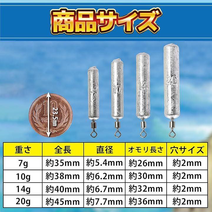 「バリエーション」汎用性の高い7g・10g・14g・20gの4サイズのオモリをご用意。