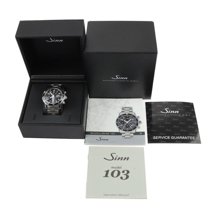 ■商品情報[管理番号]2411013010009[ブランド]ジン(Sinn)[型番]103.B.SA.AUTO[対象]メンズ[カラー]シルバー/ブラック文字盤[モデル]インストゥルメント クロノグラフ[生産国]ドイツ[シリアル]103.*****[サイズ][ケース]約41mm[腕周り]約20cm[バンド幅]約2cm[ケース厚み]約17.2mm[仕様]