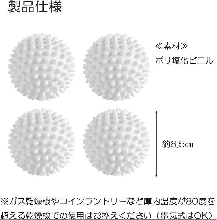「仕様」「大きさ」直径約6.5cm 「素材」ポリ塩化ビニル *ガス乾燥機やコインランドリーなど庫内温度が80度を超える乾燥機での使用はお控えください(電気式はOK)