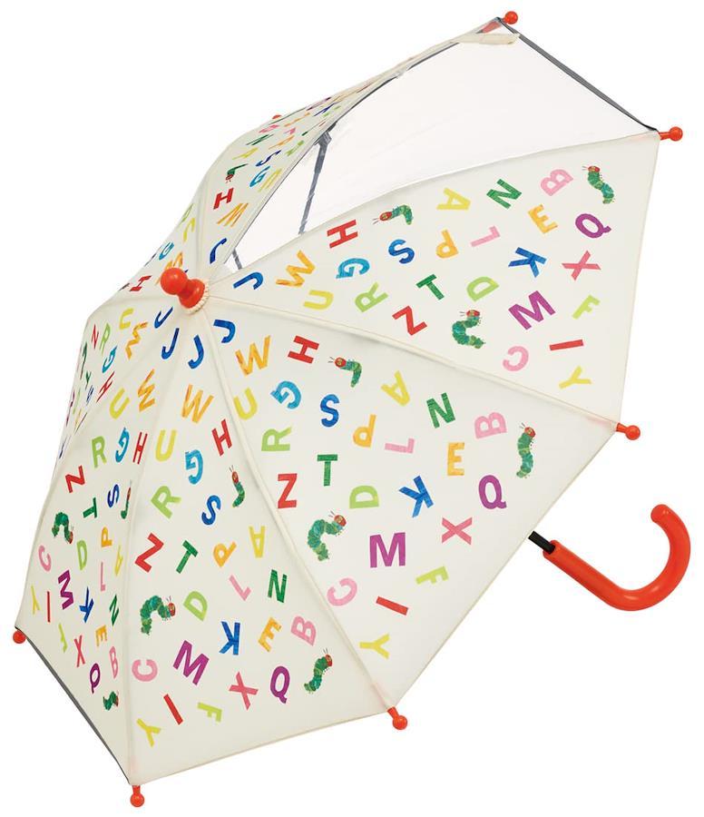 Skater Children's Umbrella, 35cm, Very Hungry Caterpillar Design, Alphabet Design, for Ages 2-3, Approx. 85-95cm, with Clear Window for Visibility, Finger Protection