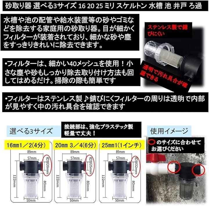 「選べる3サイズ」16 20 25 ミリ 砂取り器 販売 。 個人 家庭 用 の 濾過器 砂取り器 。 水槽 池 井戸 農作業 アクアリウム 熱帯魚 金魚 メダカ 鯉 等の 水質 改善 に 。 ろ過 砂こし 砂取り 砂 ゴミ 取り 除去 にご使用ください。
