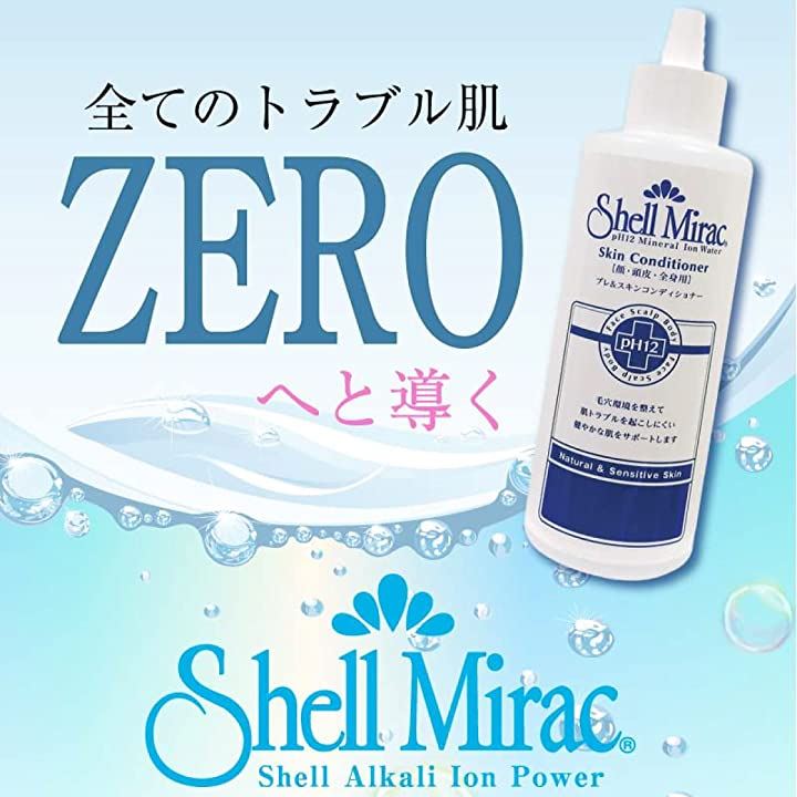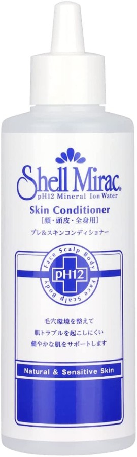 《貝殻カルシウムと酢酸を配合した、ノンアルコール・自然素材100%・PH12の肌と頭皮のローションです》
