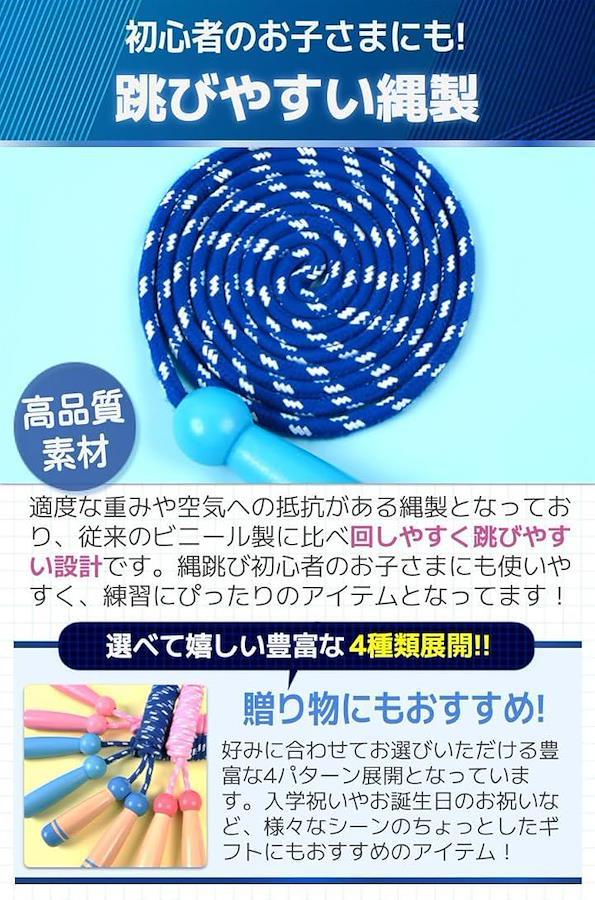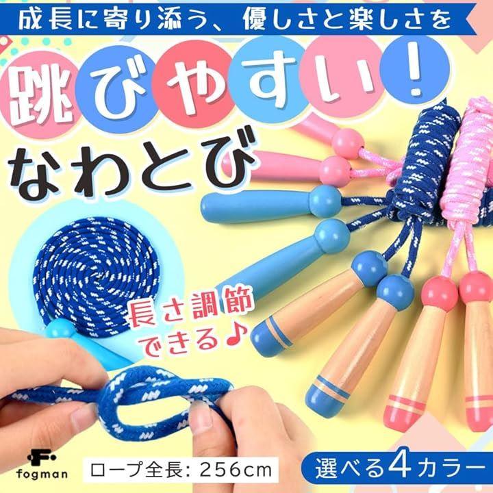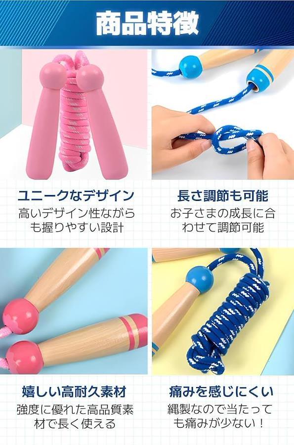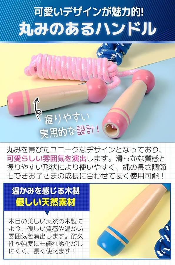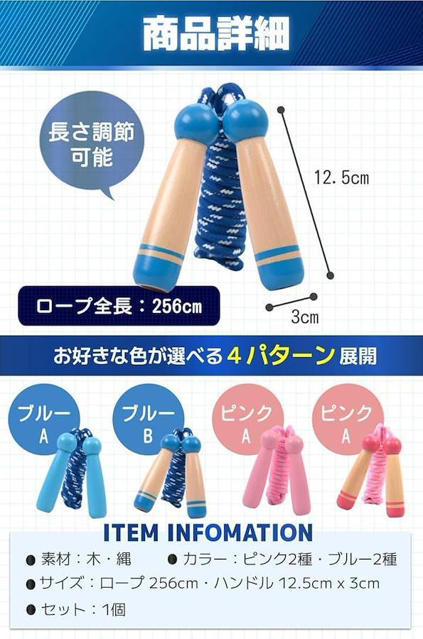 「商品詳細」素材:木・縄カラー:ピンク2種・ブルー2種/サイズ:ロープ 256cm・ハンドル 12.5cm x 3cm/セット:1個/
