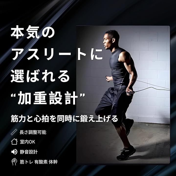 「科学的にも証明された、筋トレx有酸素の二刀流」 加重なわとびは、一般的な縄跳びと異なり、脂肪燃焼と筋力刺激の両方において効果が高いことが実験で証明されています。