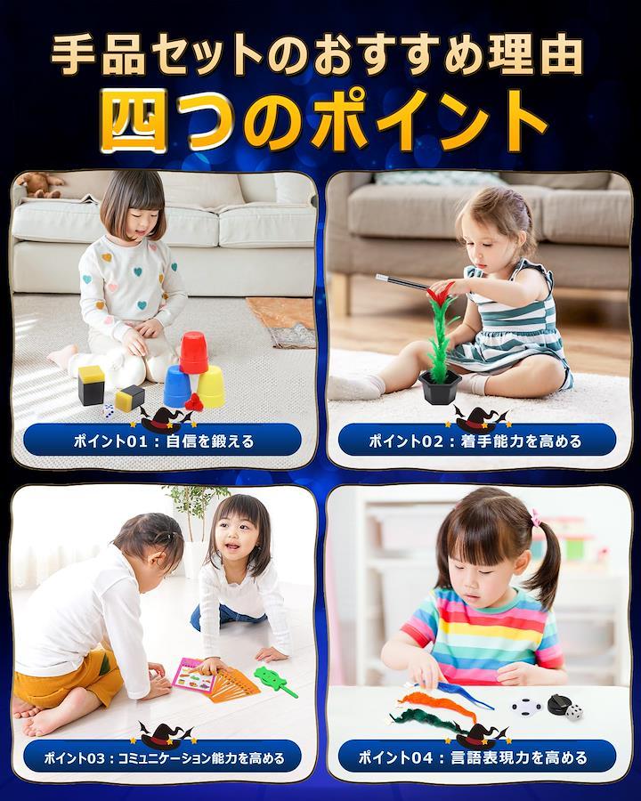 【手品21種類セット】マジックは難しくて自分にはできないなんて思っていませんか。手品のタネと仕掛けを理解して、どうすれば見ている人が喜ぶかを考えて、自分なりに演じてみましょう!この手品グッズには様々な手品のタネと解説書が入っています。合わせて21種類のマジック用品がありますので、お客様にもできる楽しいマジックがきっと見つかります。初心者でも楽しく演じられる手品用品。誰でもマジシャン気分が味わえる厳選された手品グッズ詰め合わせです。 【ギフトボックス包装&プレゼントに最適】 きれいなギフトボックス包装なので、イベントや子供達のプレゼントにも大活躍。マジック用品はコンパクトで場所をとらず持ち運びも楽々です。どこにでも持って行って練習できますし、こっそりカバンに忍ばせて、いざという時にマジックを披露することもできます。 【多様なシーンで大活躍&親子ゲームにぴったり】見栄えの良い迫力満点のマジックグッズは簡単なのに大歓声をもたらします。子ども会、パーティー、誕生日会、宴会、病院、老人ホームなどの余興やイベント、レクリエーション活動で場を盛り上げるのに一役買います。マジック用品の種類が豊富なので子どもから大人までみんなで楽しめます。 【子供初心者に手品グッズをおすすめ理由】 マジシャン顔負けの手品が披露できたら、素敵ですよね?子供におすすめ四つのポイント:ポイント01:自信を鍛える。ポイント02:着手能力を高める。ポイント03:コミュニケーション能力を高める。ポイント04:言語表現力を高める。手品用品の中でも、初級にあたるオリジナル製品をセットにしました。子供から大人まで世代を超えて愛される手品用品です。 【動画解説&日本語取扱説明書付き】動画を真似するだけで、プロの手品が再現可能です。あっと驚く、プレゼントにも使える「不思議なポーチ」。観客の喜ぶ笑顔、一緒に体験しませんか?