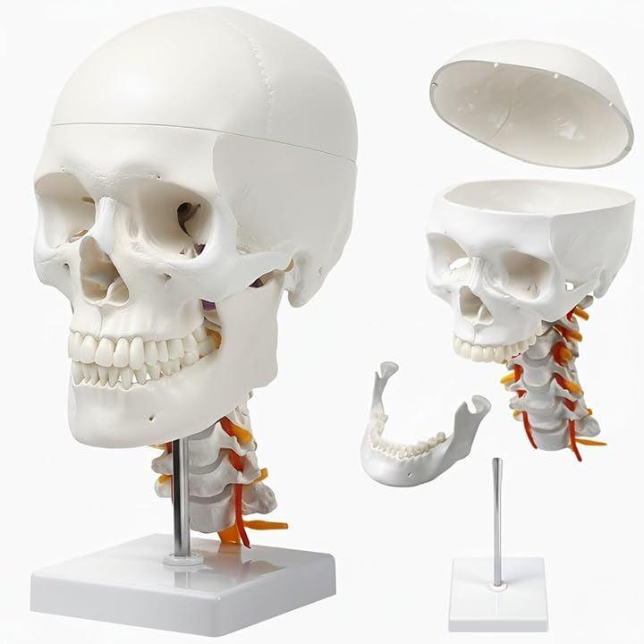Skull model with removable cervical vertebrae, human body model, supervised by a physical therapist, life-size, with nerves and vertebral arteries