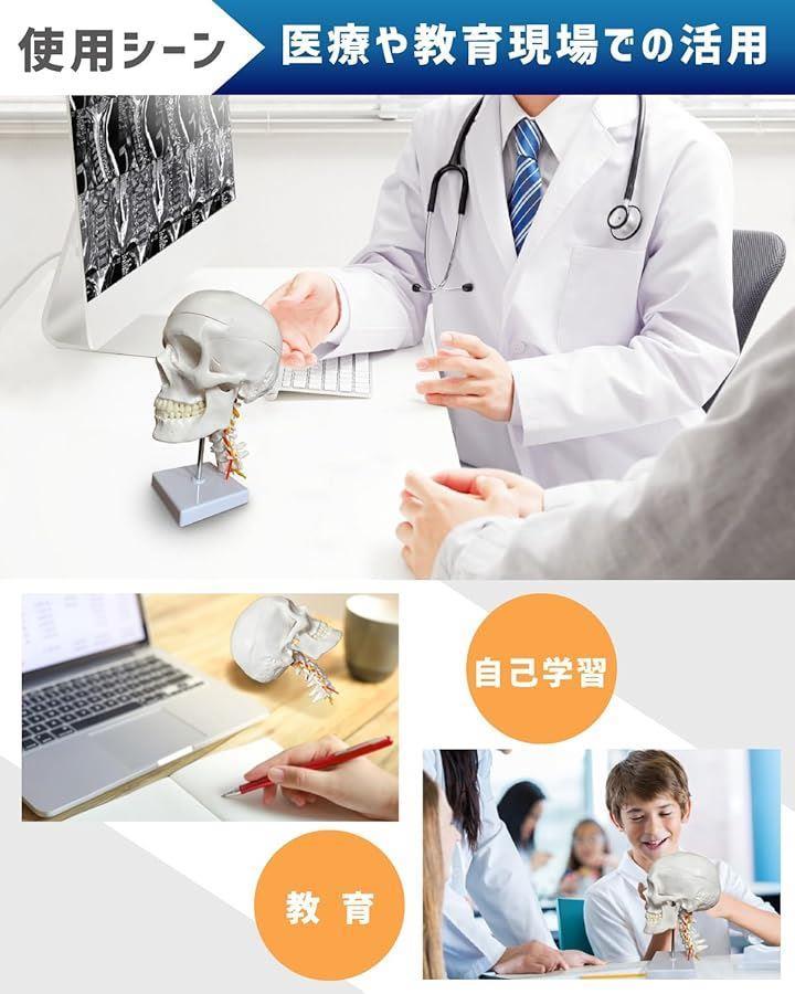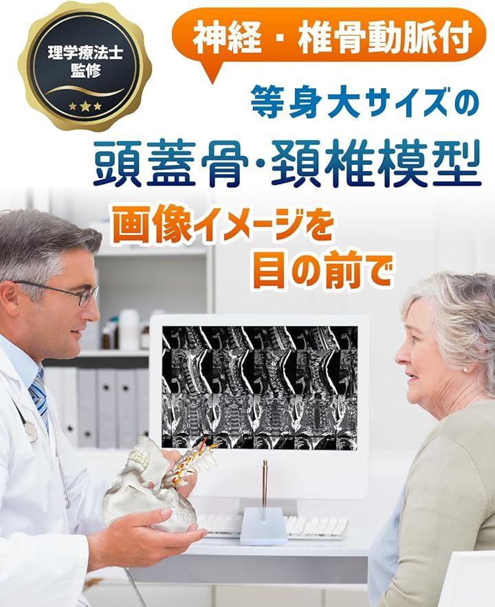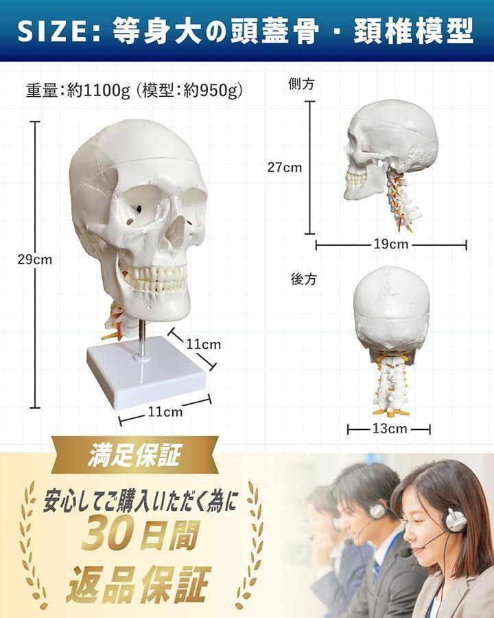 サイズ:頚椎頭蓋模型 幅13cmx奥行19cmx高さ27cm 重量 約950g(土台支柱込みで約1100g) 原産国:中国