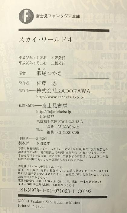Sky World 4 (Fujimi Fantasia Bunko) KADOKAWA/Fujimi Shobo Tsukasa Seo