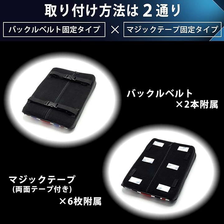 )で固定する方法と背面にゴムが付いていますのでこちらのゴムをセンターコンソールボックスに引っ掛けていただく方法です。