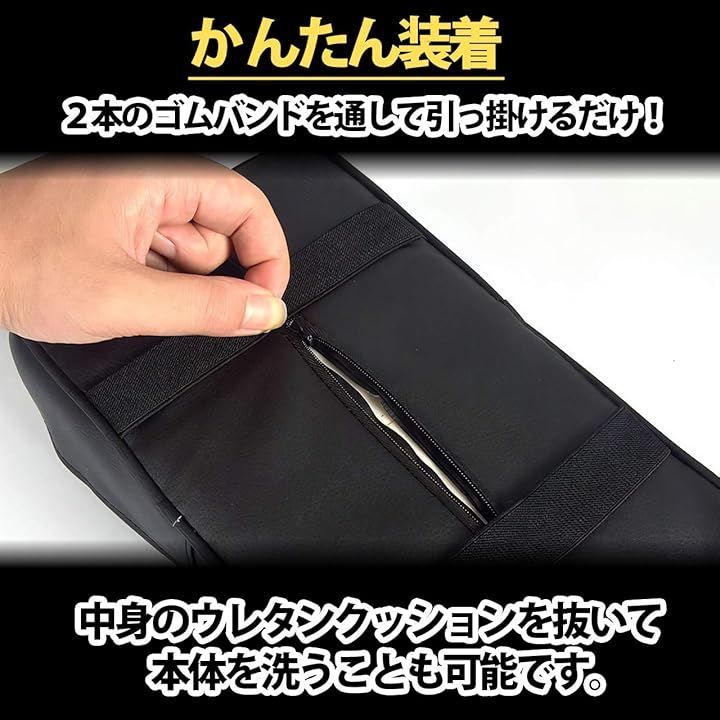 取り付けはいたって簡単。製品の背面に固定用のゴムが付いていますのでこちらのゴムをセンターコンソールボックスに引っ掛けていただくだけです。