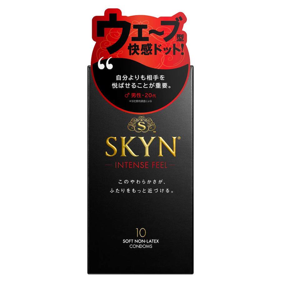 敏感部分に配置したウェーブ型ドット。 管理医療機器 医療機器認証(承認)番号:22500BZX00486000 商品サイズ (幅×奥行×高さ) :64㎜×37㎜×126㎜ 原産国:タイ 内容量:10個 ブラント名: SKYN(スキン)