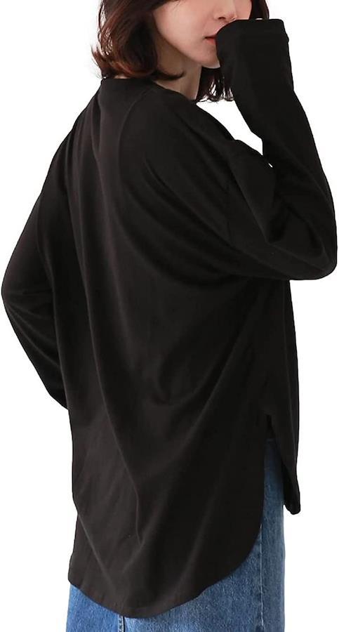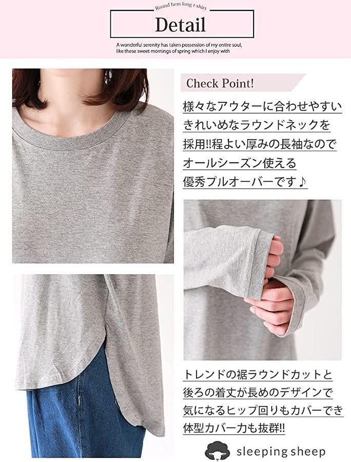 ・トレンドの裾ラウンドカットと後ろの着丈が長めのデザインで気になるヒップ回りもカバーでき体型カバー力も抜群..最近のトップスは短めで困っていた方にも嬉しいデザイン。