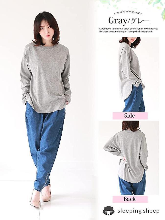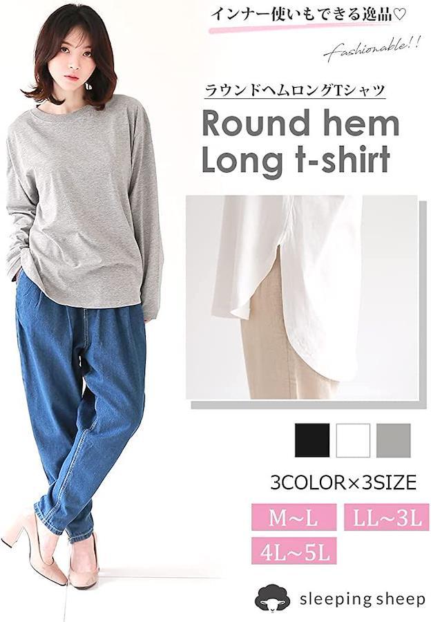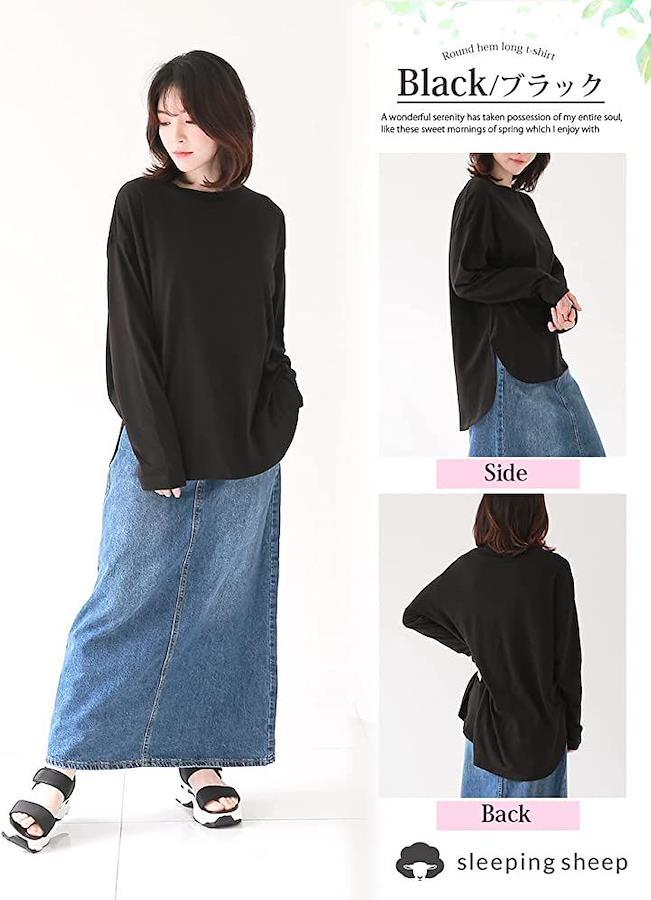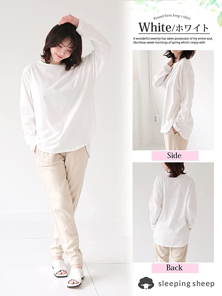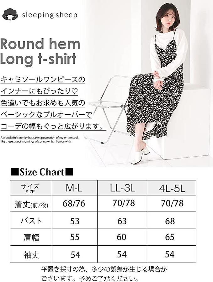 Sleeping Sheep, cute curved design, side slit, long sleeve T-shirt, longer back, easy to tuck in, hides the butt, cut and sewn top, round cut, long T-shirt
