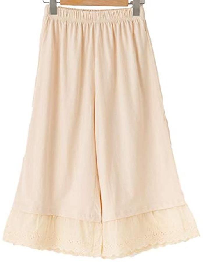 綿のナチュラルな風合いに裾のレースやフリルが可愛らしいペチパンツ。