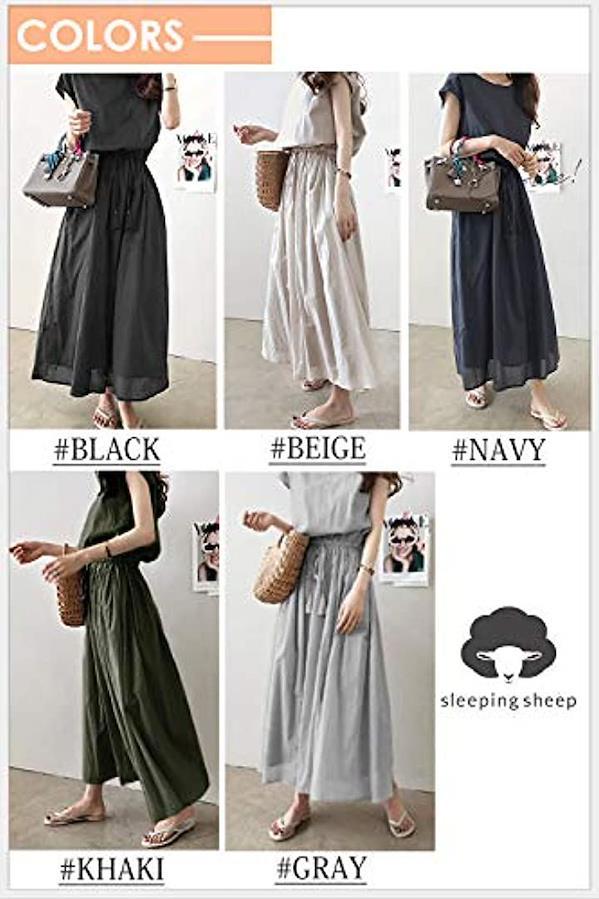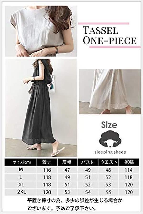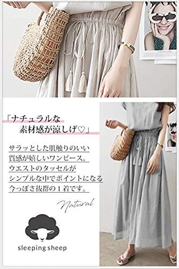 ウエストには可愛いタッセルリボンを用いており、(1)リボンを結ばずにそのまま着用でもゆったりシルエットに。