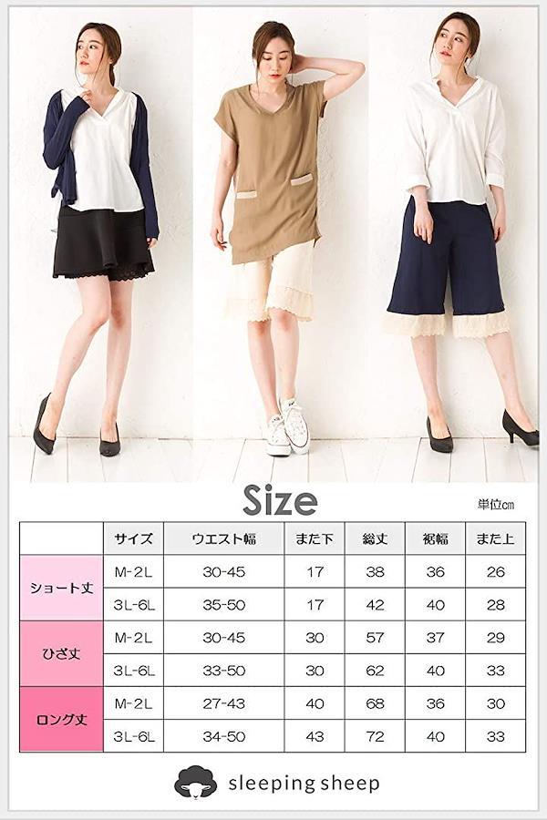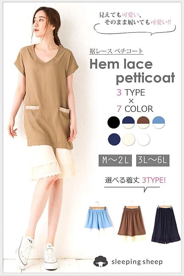 Sleeping Sheep - Cute when visible, cute when worn as is - 100% cotton, lace hem, pettipants, 3 lengths and 6 colors to choose from, M-6L, large sizes, petticoat, innerwear 2. Short length 3L-6L