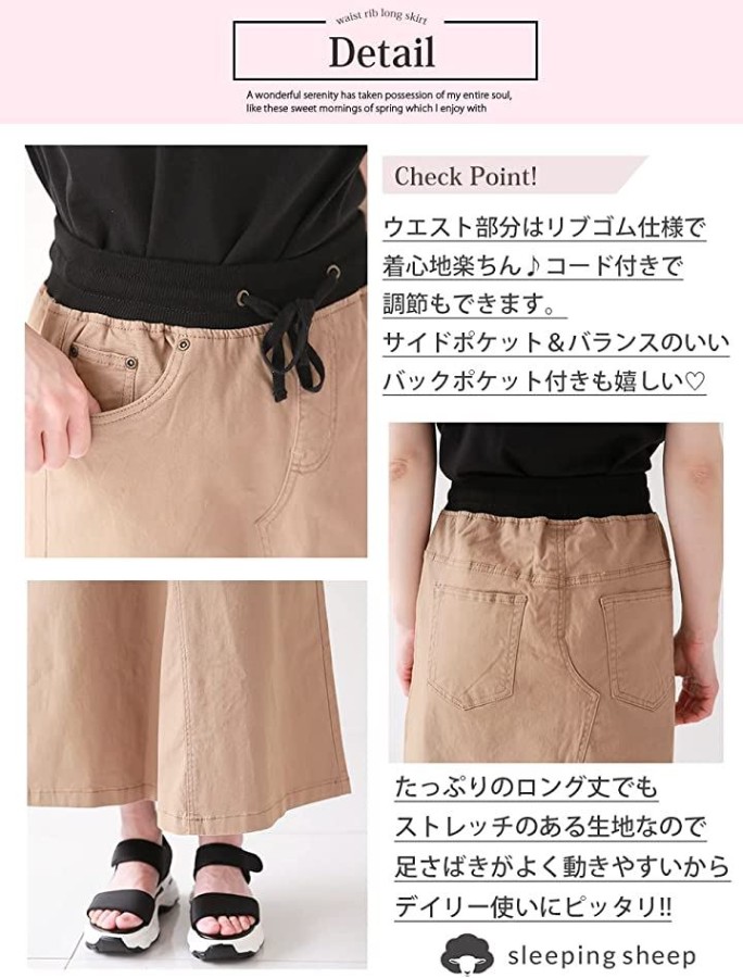 ウエスト部分は伸縮性ばっちりのリブゴム仕様のドッキングスカート。