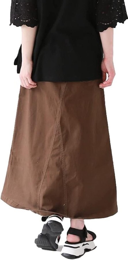 脚のラインを出さずにカバーしてくれるAラインのシルエットと着丈感で体型カバーも叶えてくれるチノスカートです。