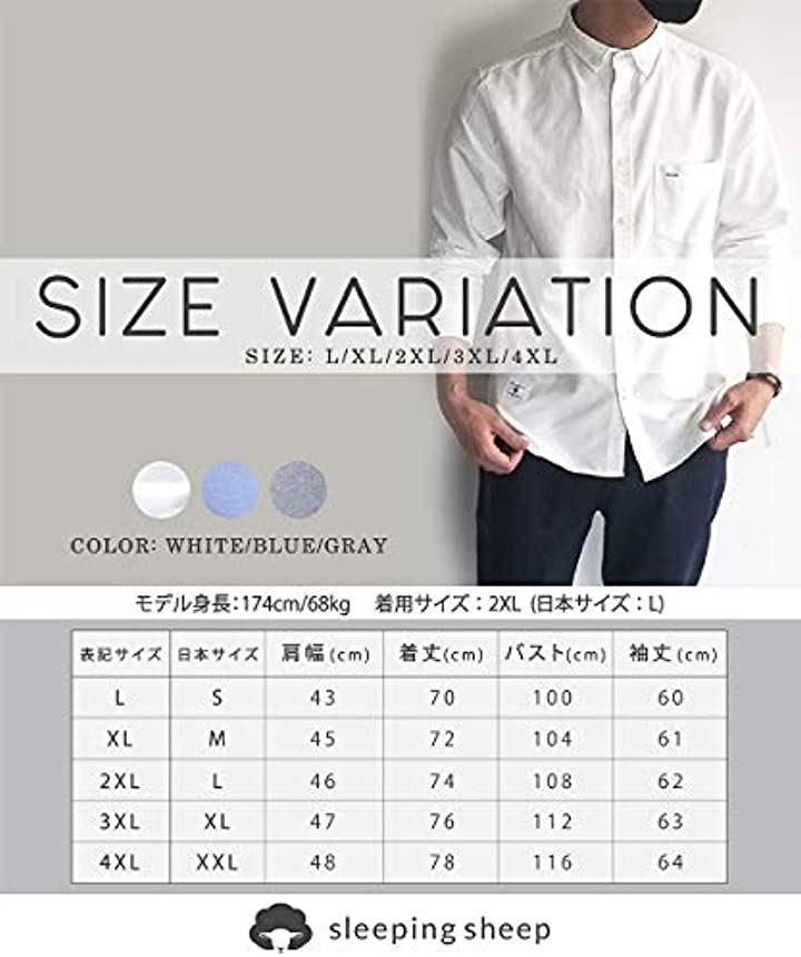 メイン素材:綿素材構成:綿100%サイズ:S~2XL カラー:ブルー・グレー・ホワイト中国製寸法 (モデル174cm68kg着用サイズ2XL)L(日本サイズS):肩幅43cm着丈70cmバスト100cm袖丈60cm XL(日本サイズM):肩幅45cm着丈72cmバスト104cm袖丈61cm 2XL(日本サイズL):肩幅46cm着丈74cmバスト108cm袖丈62cm 3XL(日本サイズXL):肩幅47cm着丈76cmバスト112cm袖丈63cm 4XL(日本サイズXXL):肩幅48cm着丈78cmバスト116cm袖丈64cm