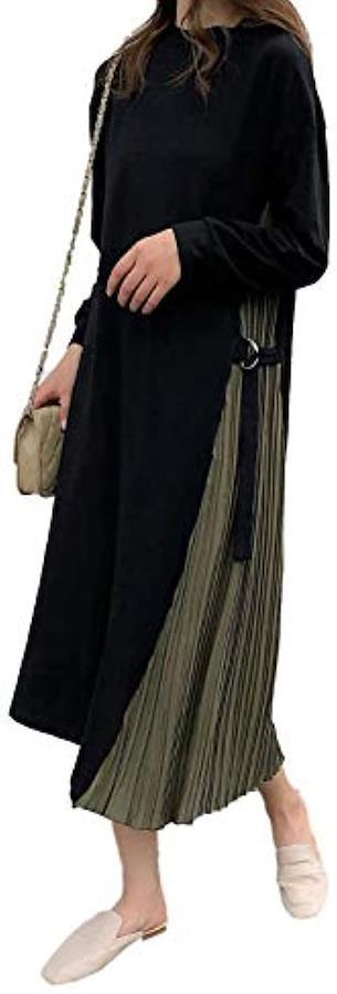 色: 3.長袖ブラック×カーキ サイズ: L |