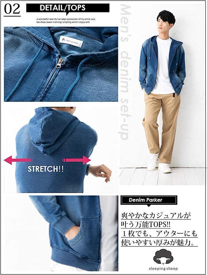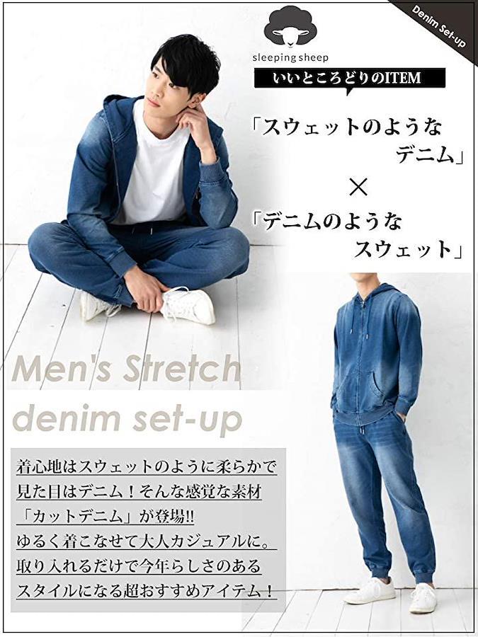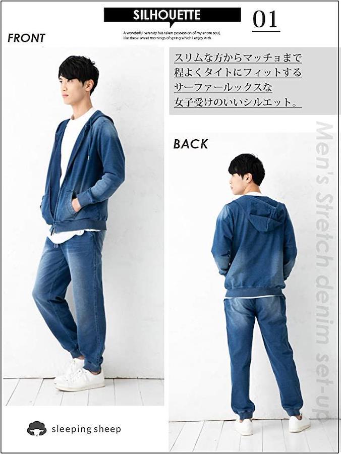 スウェットデニムは意外と何にでも合うので、普段からサーフ系コーデをしていないメンズにもおすすめ。・もちろん、上下単体で使ってもOK。ニットやスウェット、ロンTなど、トップスを選ばず着こなしができる、着回し力抜群なボトムスなんです・・素材構成: コットン78% ポリエステル 17% ポリウレタン 5% 中国製 ジャケット(cm) М(着丈71 身幅54 肩幅41 袖丈62) Ⅼ(着丈73 身幅56 肩幅43 袖丈63) XL(着丈75 身幅58 肩幅45 袖丈64) パンツ(cm)М(ウエスト幅36 股下70.5 ベルト幅5 裾リブ幅6) Ⅼ(ウエスト幅38 股下72 ベルト幅5 裾リブ幅6) XL(ウエスト幅40 股下73.5 ベルト幅5 裾リブ幅6)