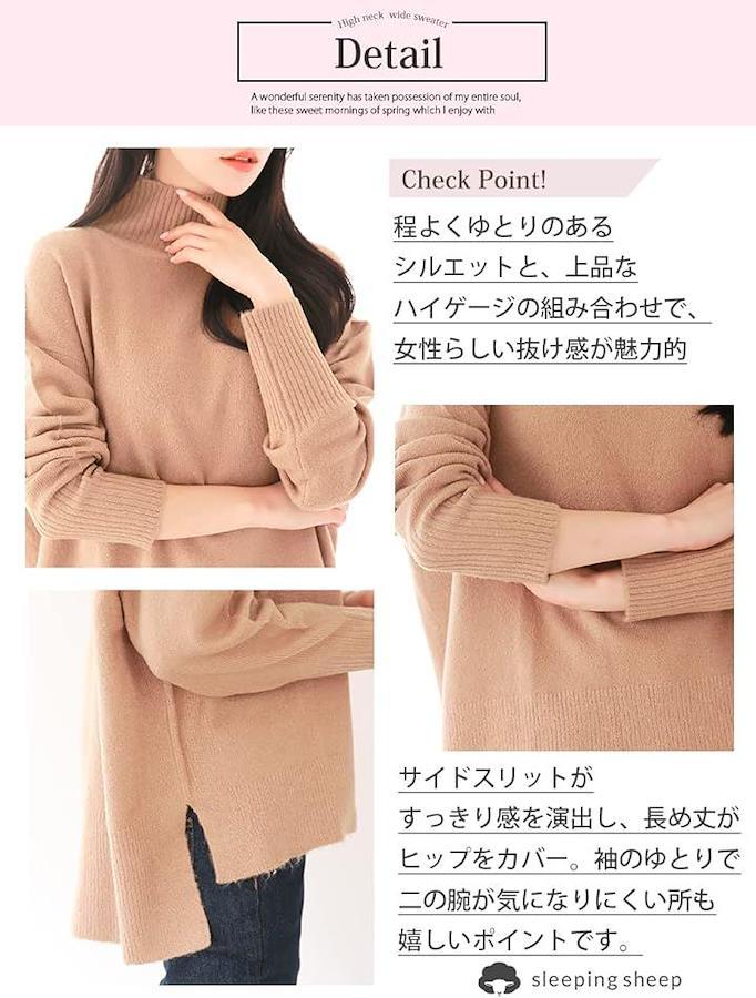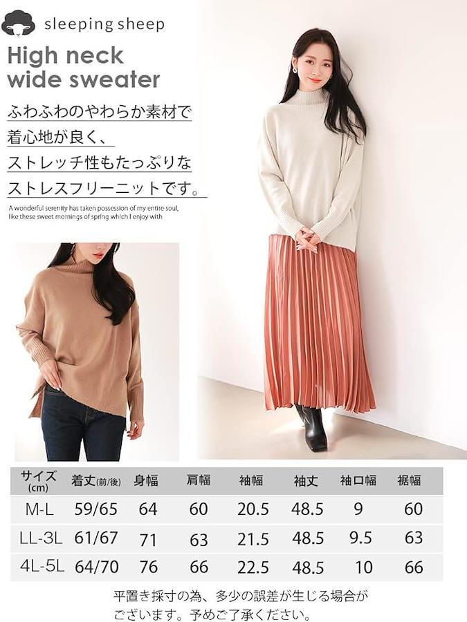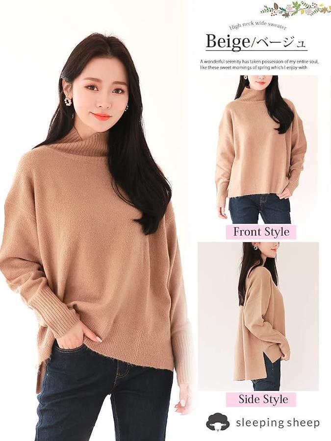 ふわふわのやわらか素材で着心地の良いタートルネックワイドセーターになります。