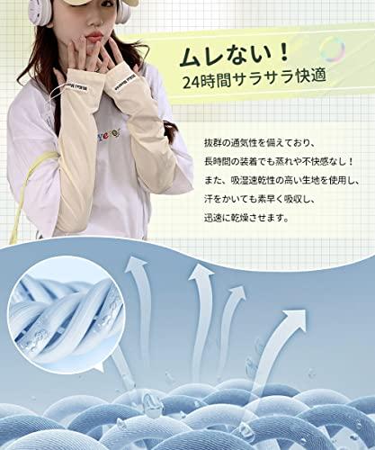 【ゆったりタイプ&極上のつけ心地】 多くの女性方がアームカバーの着用時に感じる「締め付け感が強くて長時間の着用が辛い...」という悩みにお応えするために、レディース向けに開発されたUVアームカバーレディースです。ゆったりとしたデザインで作られており、余裕がありますので、着脱が簡単で動きやすいです。締め付け感がないため、長時間の着用でも疲れず、ストレスを感じません。きつめの感じが苦手な方にもぜひご利用いただけるアームカバーレディースです。また、皮膚に密着せず、ベタつかず蒸れないため、ドライな状態が続き、極上のつけ心地を実現したUVアームカバーレディースです。(※布製品の特性上、左右の長さは1-2cmの誤差がある場合がありますのでご了承ください。)