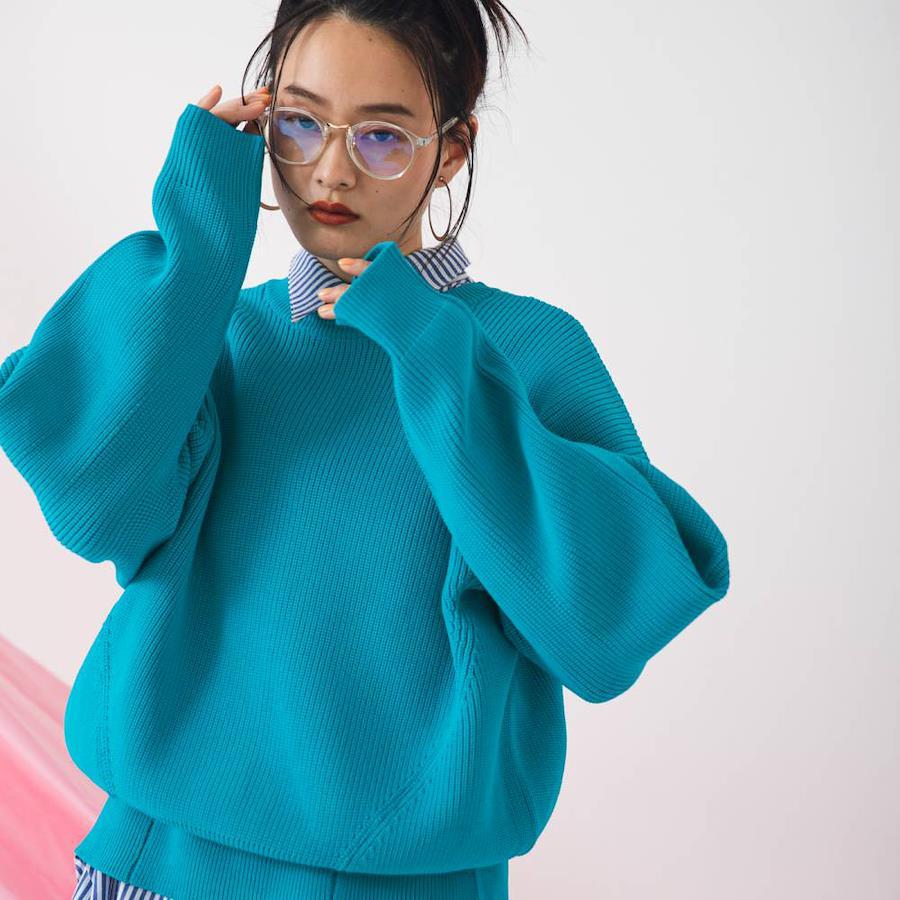 袖にタックを入れることで、女性らしさを演出。シルエットがしっかりでるニットだから、1枚でこなれ感、オシャレ度もUP。