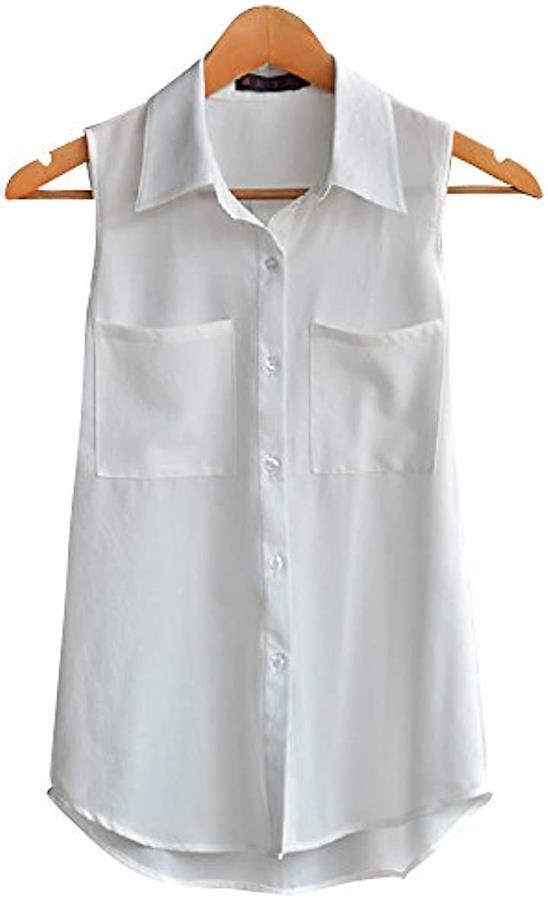 ・ノースリーブ シフォン カラー スリム レディース シャツとなります。