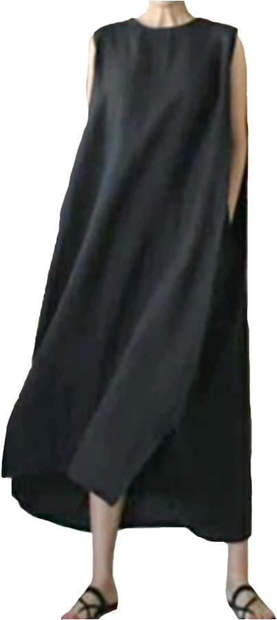 ・ゆったり優しいシルエットのノースリーブロングワンピースです。