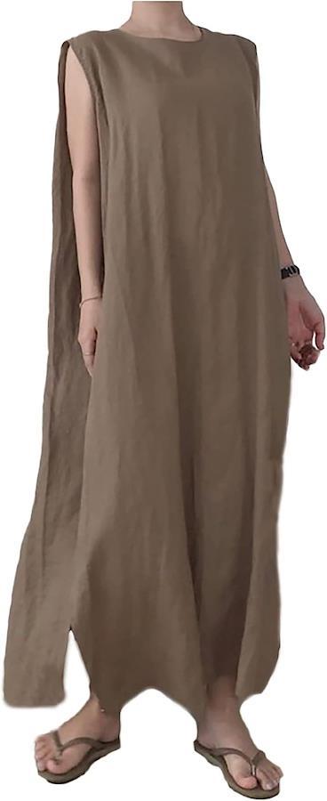 ・ゆったり優しいシルエットのノースリーブロングワンピースです。