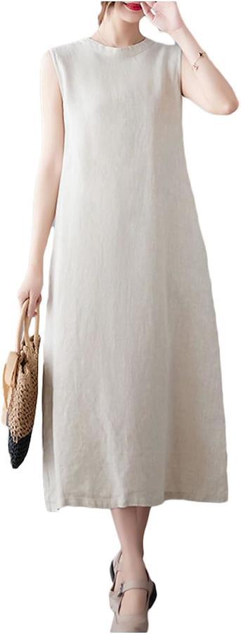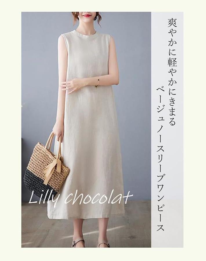 ゆったり優しいシルエットのノースリーブロングワンピースです。