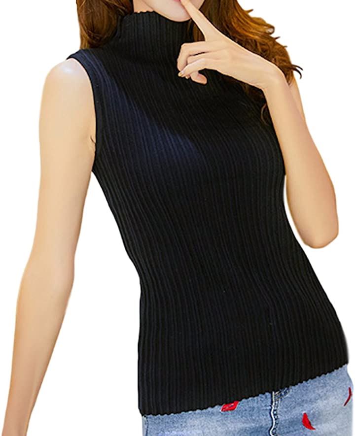 ハイネックが苦手な方にもお勧めです。春夏秋冬オールシーズンで着られる可愛いノースリーブニットトップスタンクトップ。