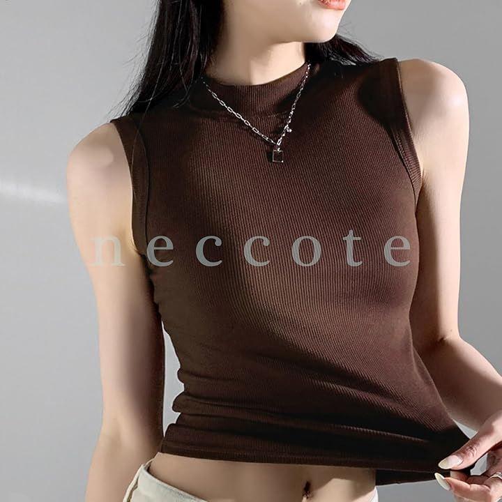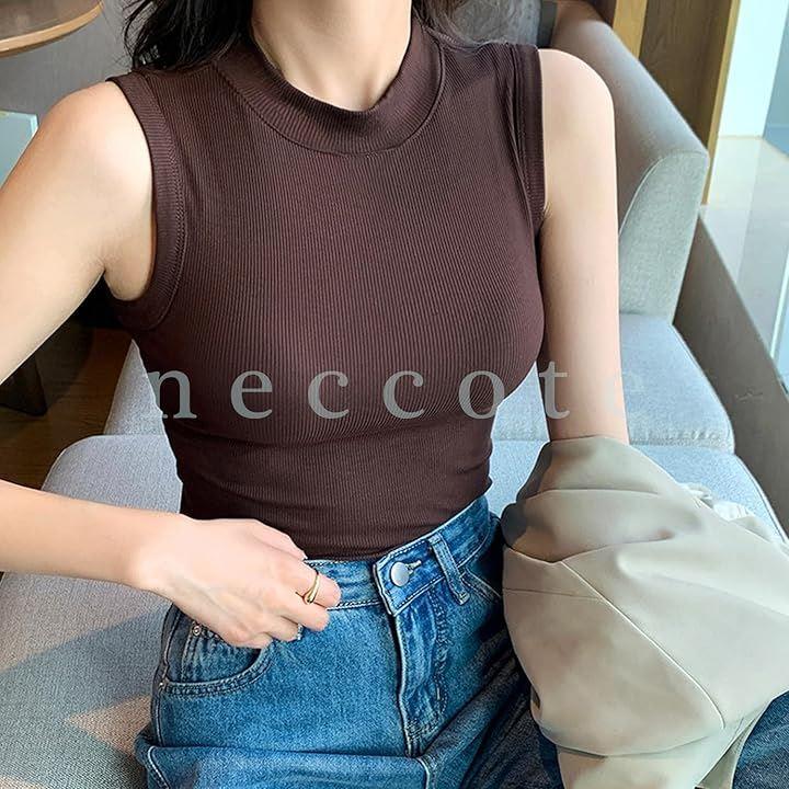 首元をきれいに見せてくれるハイネックのノースリーブ。