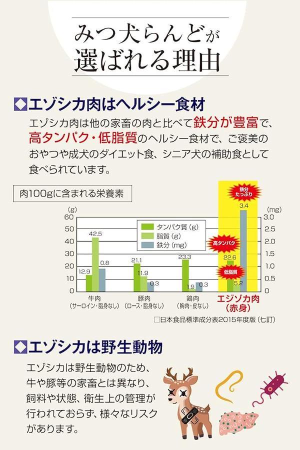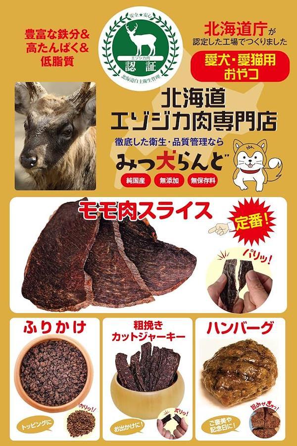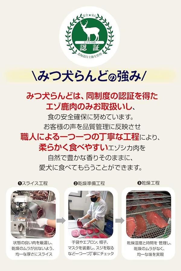 100%天然エゾ鹿肉で、混ぜものや練りものではないため、パリパリの食感が魅力です。