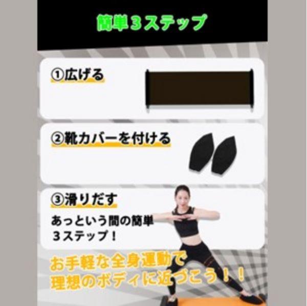 「室内トレーニングの決定版。」マットを敷く、履く、滑るのかんたん3ステップで室内で本格トレーニングができる。下半身・体幹を鍛えられるのはもちろん、楽しく滑っている間に脂肪が燃焼され全身引き締まったボディに*