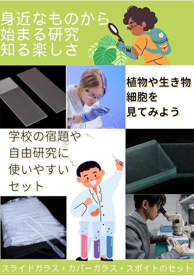 こちらのプレパラートとカバーガラスと顕微鏡スポイトのセットは、休みの日の実験イベントや化学イベント個人や業務で行うワークショップや学校の授業で行う観察など様々なシーンにお使いいただけます。